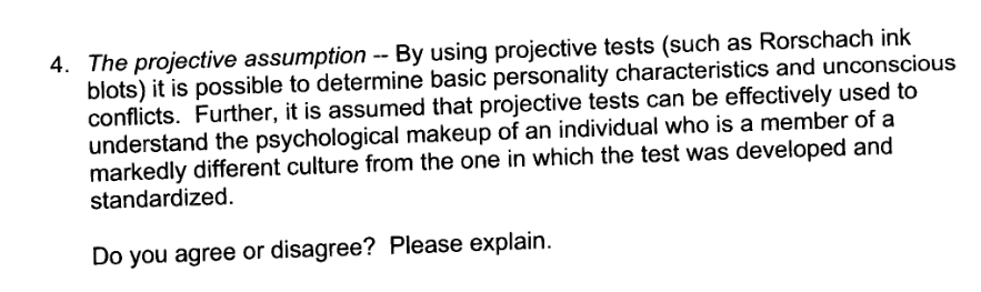 Solved Projective Tests Are Based On The Belief That People Chegg Com